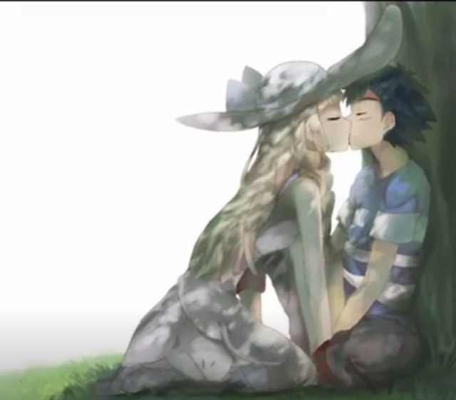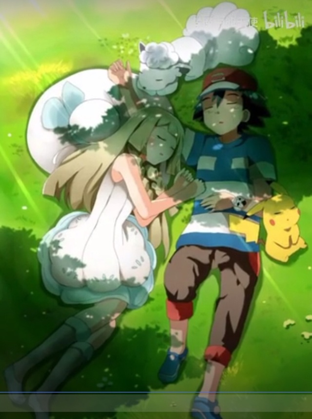 小智:莉莉艾,刚才真的很帅哦!(坐在一棵大树下)
