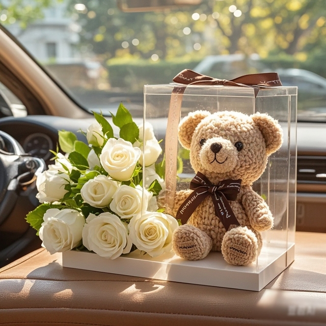 车内弥漫着淡淡的花香,林墨从后座拿出了一束白玫瑰和他亲手织的小熊玩偶。