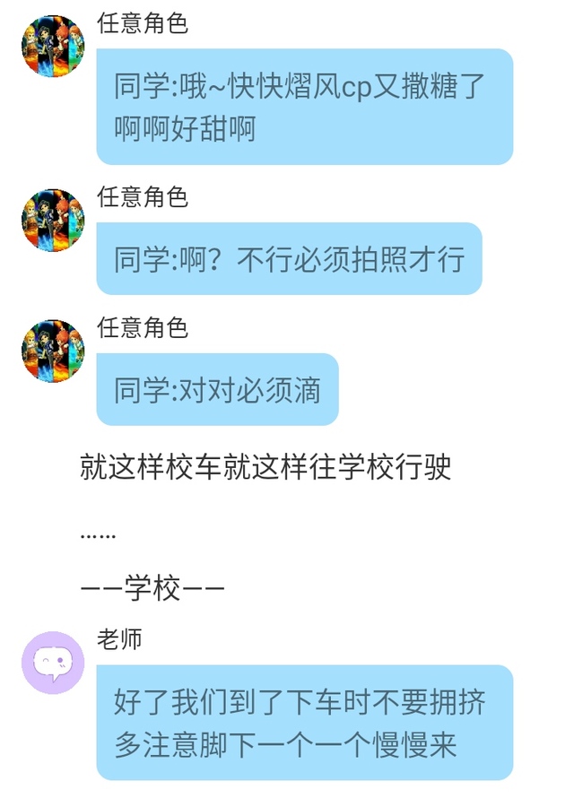 老师:好了就说到这里大家收拾好东西回去班长和我去办公室一趟