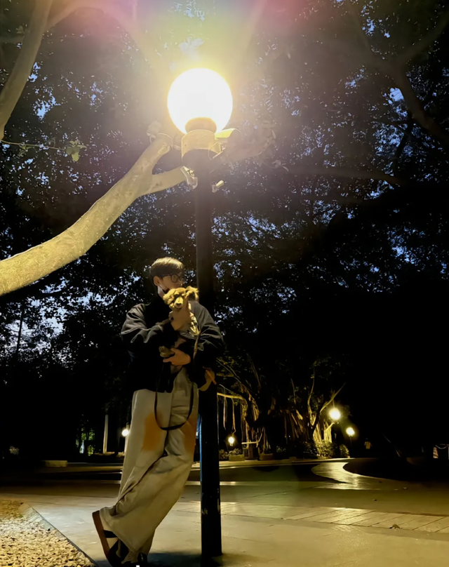 刚到楼下就看到了简阳。他怀里抱了一只小狗。路灯的光打在他的身上,有种说不出的温柔。童谣拿出手机拍下了这一幕。