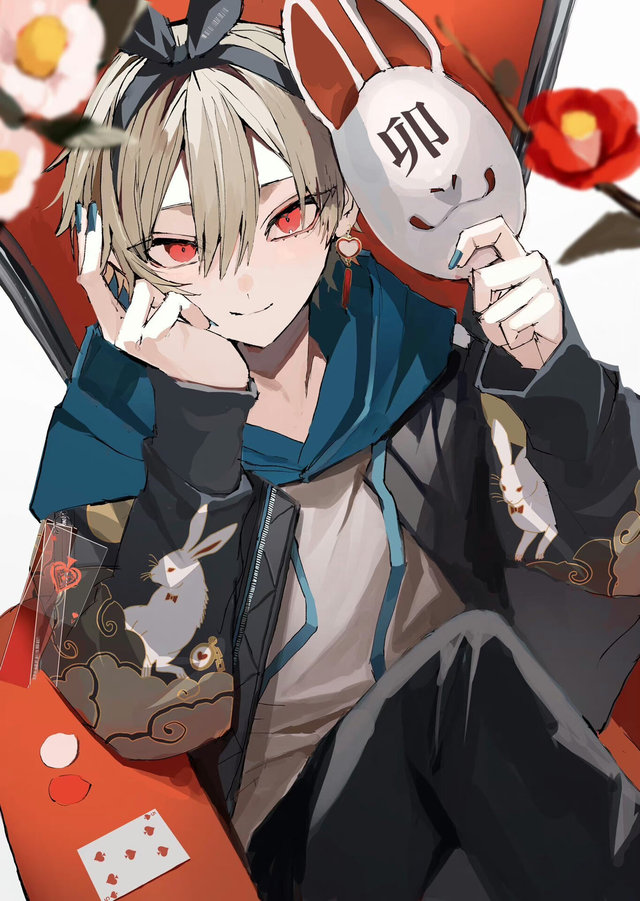 还有一个拿着面具的少年,嘴角挂着一抹坏笑。